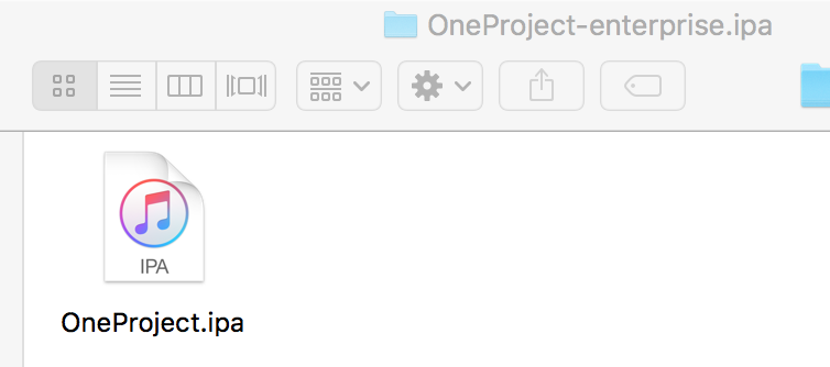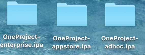 5.导出的ipa包默认保存到桌面,当前保存目录如果需要修改,可以自己修改脚本。如图所示,比如我项目名字是OneProject,则导出的包如下图: