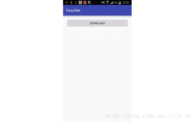 接下来我们通过下载一张网络图片进行演示对于AsyncTask的使用。首先来看下效果: