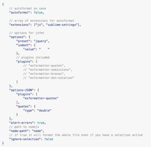 类似的问题会导致代码校验时无法通过,并且在代码简洁程度上也让人难以接受。而sublime-jsfmt能够帮助搞定这个问题。上图格式化后会变成如下效果: