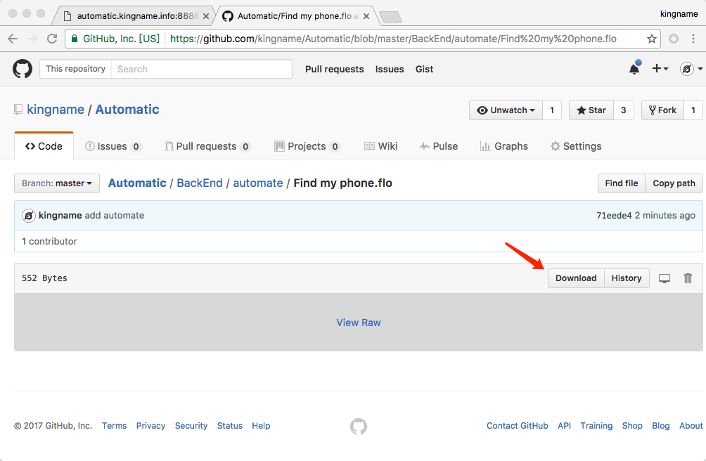 现在再来看看安卓上面的Automate应该如何配置流程。我已经将文件放在了:Github上面。点击Download按钮即可下载,如下图所示: