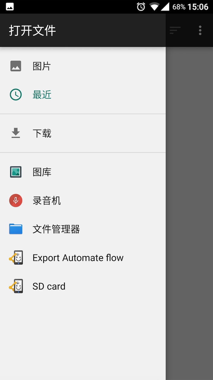 下载完成以后,将这个文件放在手机中,打开手机上的Automate,点击右上角的三个竖着的点,选择Import,如下图所示: