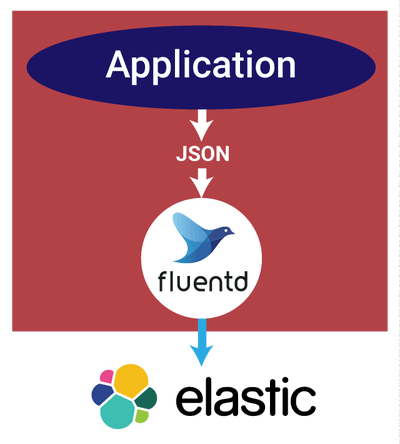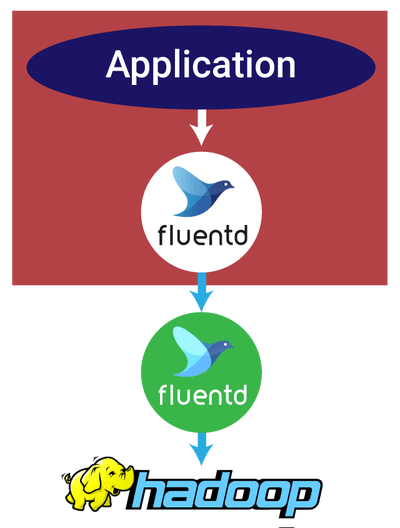 如果你需要处理大量的复杂数据,最好的办法是同时在来源端和目标端设置聚合节点,利用 Fluentd 的多种设置模式。使用 Docker 附带的 Fluentd 日志驱动程序,你的应用程序可以将其日志写到 STDOUT 输出流。Docker 会自动把它们转发到本地的 Fluentd 实例上,然后按顺序聚合并通过 TCP 连接把它们再转发到目标端的 Fluentd 聚合器上。