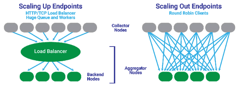 水平扩展更复杂,但可以提供(理论上讲)无限的容量。你可以随时添加更多的聚合器节点。