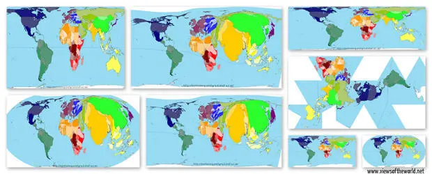 因为地球是一个赤道略宽两极略扁的不规则的梨形球体,其表面是一个不可展平的曲面,所以运用任何数学方法进行这种投影转换都会产生误差和变形,为按照不同的需求缩小误差,就产生了各种投影方法。比如这篇很有意思的文章你所不知的有趣投影方法。也可以看文末的几幅地球不同投影的图。
