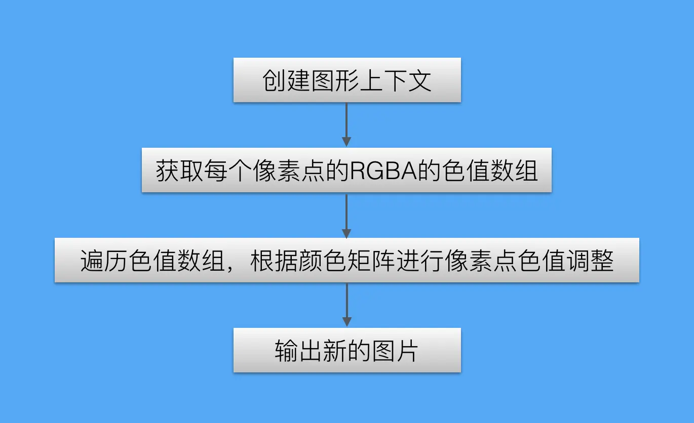 该方法中需要传入一个原始图片信息和一个颜色矩阵,颜色矩阵决定了图像的渲染效果,因此不同的滤镜效果可以通过设置不同的颜色矩阵进行转换,如果您不了解颜色矩阵,点击这里进行了解