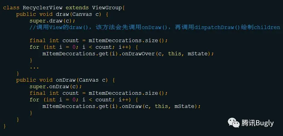 那么onDraw()是怎么被调用的呢?还有ItemDecoration还有一个方法 onDrawOver(),该方法也可以被重写,那么onDraw()和 onDrawOver()之间有什么关系呢?