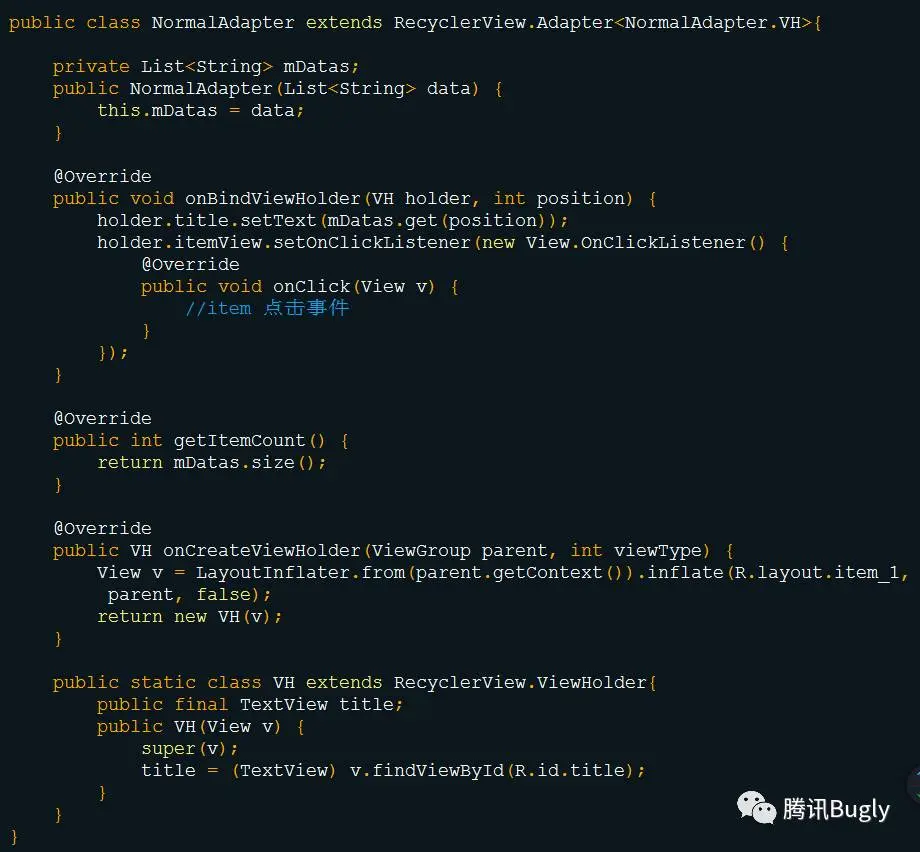 创建ViewHolder:在NormalAdapter中创建一个继承