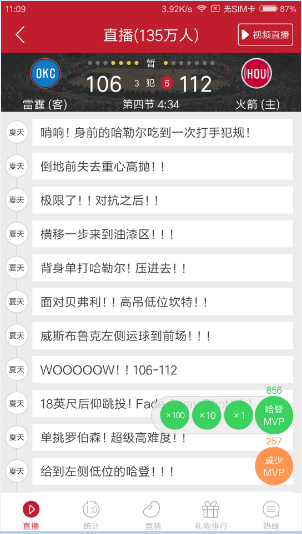 作为一个资深篮球爱好者,我经常会用虎扑app看比赛直播,后来注意到文字直播界面右下角加了两个按钮,可以在直播过程中送虎扑币,为自己支持的球队加油,具体的效果如下图所示: