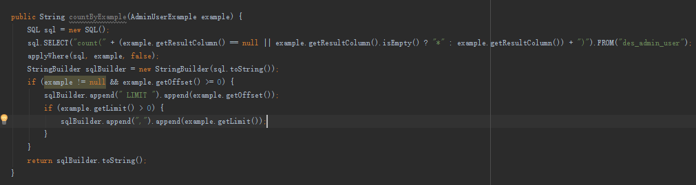 bodyLines.add(1, "if (example != null && example.getResultColumn() != null && !example.getResultColumn().isEmpty()){");