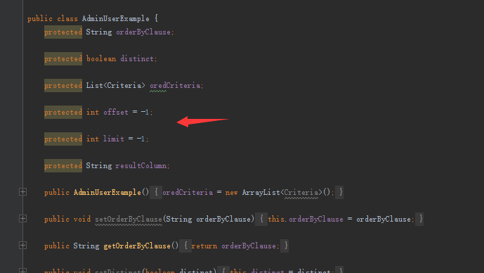 如上,offset、limit以及resultColumn 属性以及get、set 方法均以创建完成。