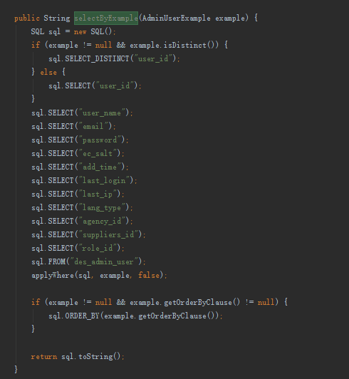 bodyLines.add(2, "sql.SELECT(example.getResultColumn());");