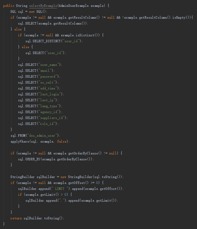 bodyLines.add("StringBuilder sqlBuilder = new StringBuilder(sql.toString());");