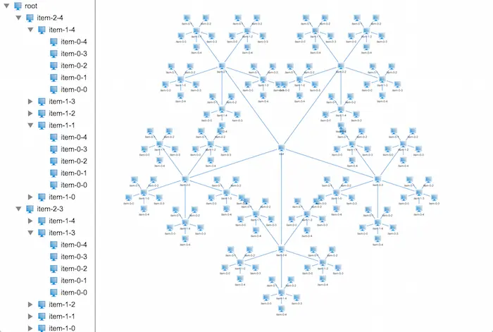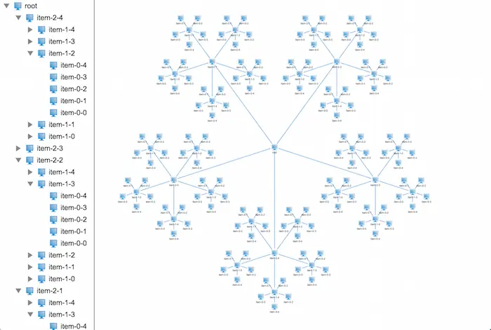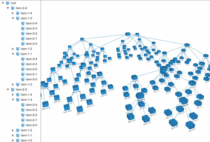 在HT for Web中2D和3D应用都支持树状结构数据的展示,展现效果各异,2D上的树状结构在展现层级关系明显,但是如果数据量大的话,看起来就没那么直观,找到指定的节点比较困难,而3D上的树状结构在展现上配合HT for Web的弹力布局组件会显得比较直观,一眼望去可以把整个树状结构数据看个大概,但是在弹力布局的作用下,其层次结构看得就不是那么清晰了。所以这时候结构清晰的3D树的需求就来了,那么这个 3D树具体长成啥样呢,我们来一起目睹下~