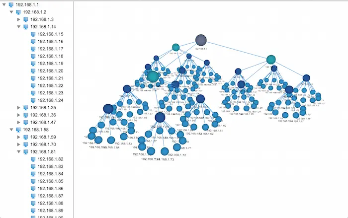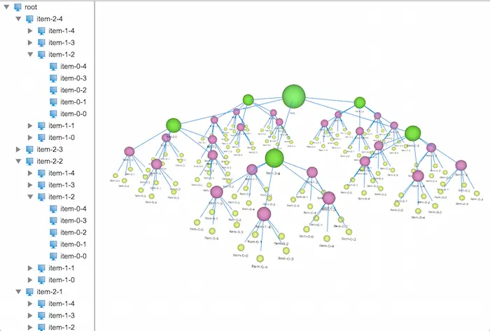 从效果图可以看得出,末端节点的默认半径并不是很理想,布局出来的效果连线都快看不到了,因此我们可以增加末端节点的默认半径来解决布局太密的问题,如将默认半径设置成40的效果图如下: