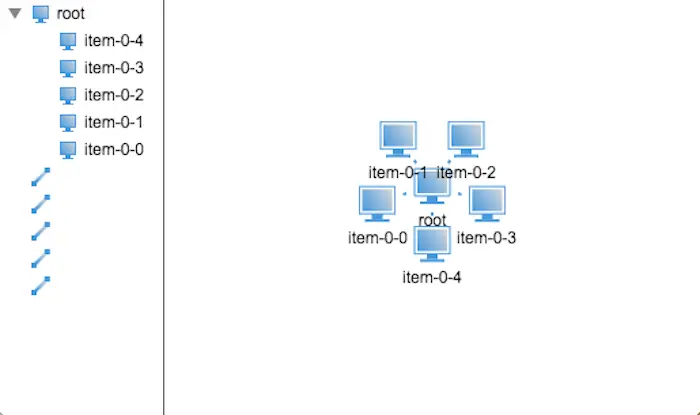 我现在先创建了两层的树状结构,所有的子节点是一字排开,并没有环绕其父亲节点,那么我们该如何去确定这些孩子节点的位置呢?