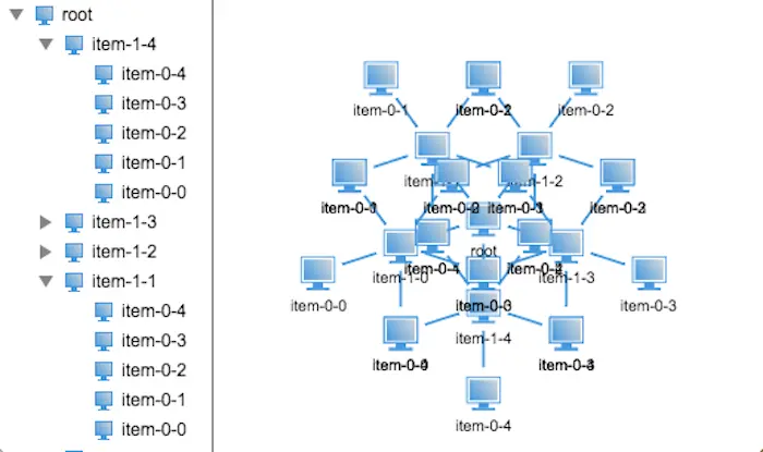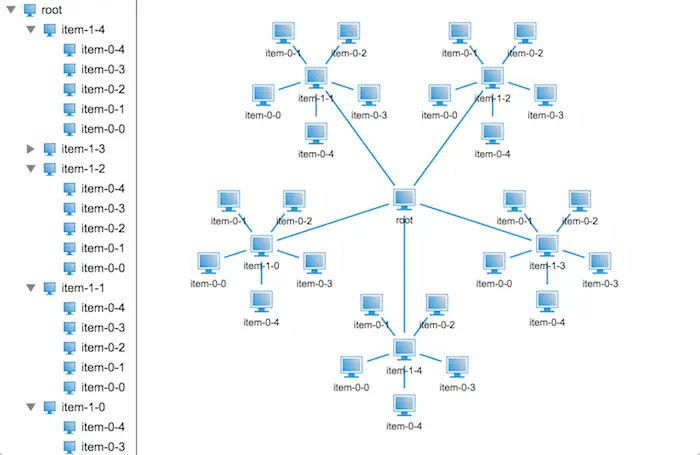 嘿嘿,代码写得可能有些复杂了,简单的做法就是嵌套几个for循环来创建树状结构数据,在这里我就不多说了,接下来我们来探究第二个问题。