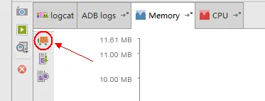 然后运行你的项目,打开这个Activity,然后按返回,退出Activity,然后通过IDE强制触发一次GC操作: