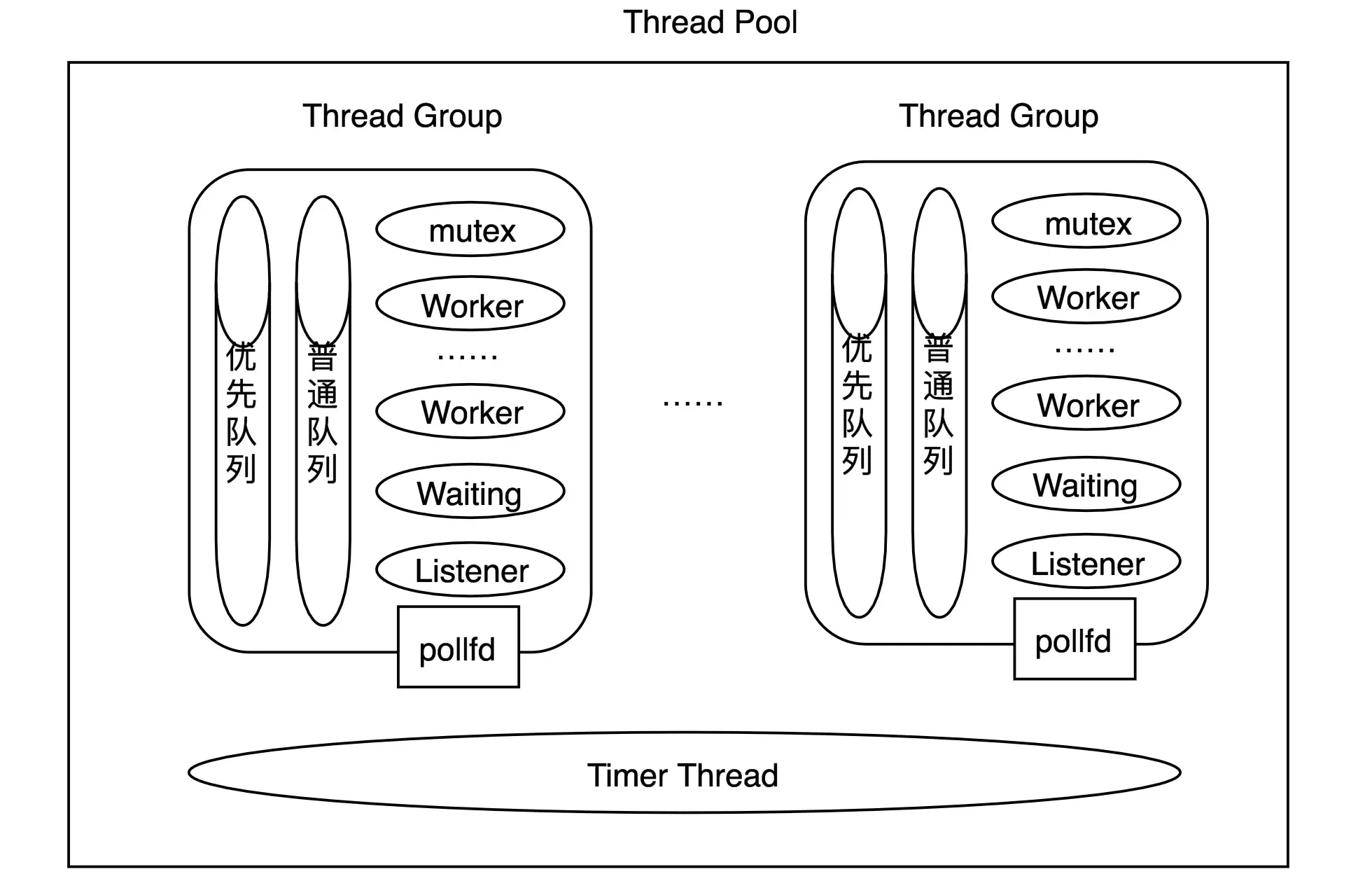 线程池由多个线程组构成,线程池的细节基本都在线程组内。