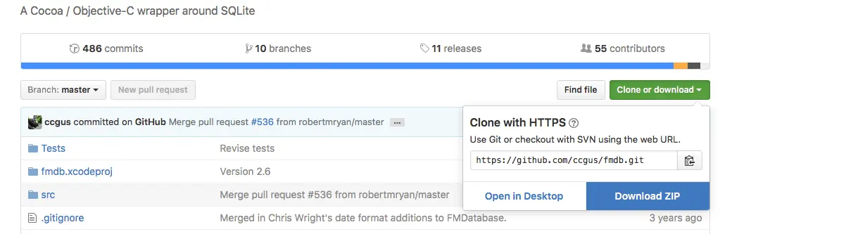 现在把注意力全部集中到 FMDB 上来,它实际上是一个 SQLite 的包装器,这意味着可以让我们在更高的抽象层访问 SQLite 特性,我们不必处理链接方面的东西以及实际的数据库读写操作。对开发人员来说,使用自己的 SQL 知识并编写自己的 SQL 查询,而不必编写自己的 SQLite 管理器,这是最好的选择。它有 Objective-C 和 Swift 版本,并且由于将它集成到项目中非常快,并不会影响开发进度。