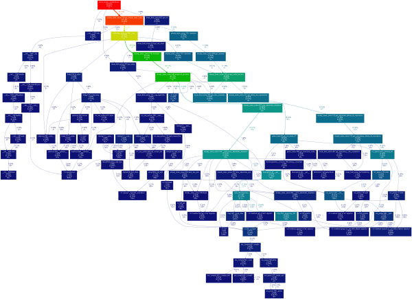Gprof2Dot可将多种Profiler的数据转成Graphviz可处理的图像表述。配合dot命令,即可得到不同函数所消耗的时间分析图。具体使用方法详见: jrfonseca/gprof2dot