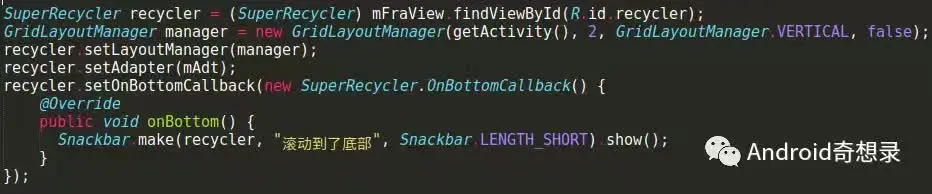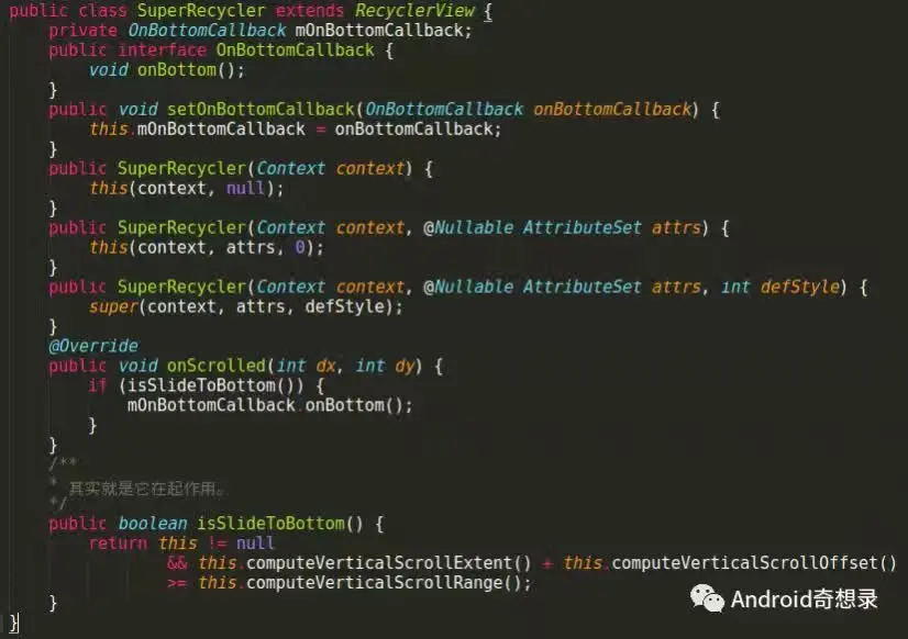 最近在做一个本地的万能播放器,需要监听RecyclerView滑动到底部,向用户提示已经滑动到最底部;看了网上其他童鞋的写法,比较繁琐。现在给出我的实现方法,非常简单实用,在监听回调方法中,可以做很多想做的事情: