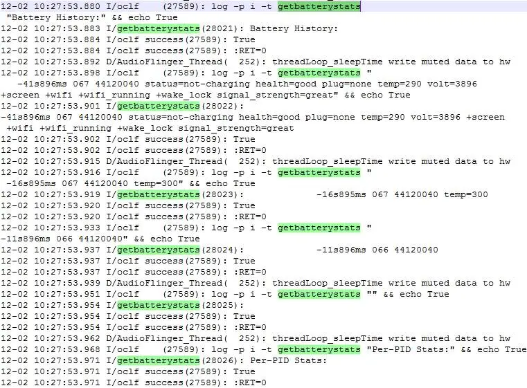 shell('log -p i -t getbatterystats "' .. line .. '" && echo True')