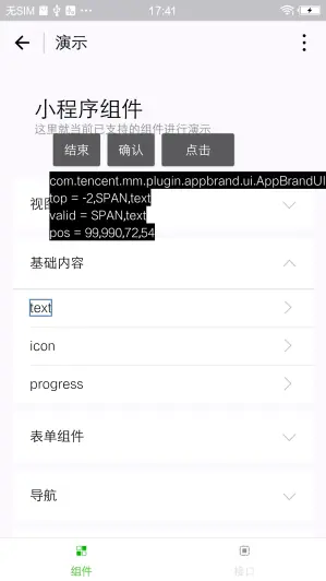 小程序对当前已支持的组件给出了演示程序,首先看下这些控件的真面目