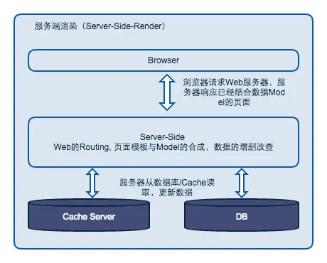 用服务端语言(例如NodeJS, Java, Python, Ruby, PHP等等)写过Web的朋友应该都很清楚,以前大部分时候我们写的Web,尤其经典的MVC模型。多年以前,那会还不流行前后端分离式的开发,虽然Ajax技术已经很流行,但是Web页面的功能和交互并没有那么复杂。大部分的页面点击一个连接,即请求到服务器,服务器控制路由(Router)决定响应的View,服务器将数据库获取的数据Model与HTML模板结合,然后生成HTML页面响应到浏览器。那时候Web大部分的业务都是服务器直接处理的,很多所谓的状态管理也都是服务端直接操作操作缓存(Cache)或者数据库来完成的。所以那时候的前端并没有太多的所谓的状态需要管理,顶多大家有时候会在内存里面用一全局对象,来处理些简单的数据共享。随着Web前端的发展,越来越多的后端工作转移到了前端,数据的共享,同步变的异常复杂和麻烦,所以这个时候急需这种完善的状态管理解决方案的出现。