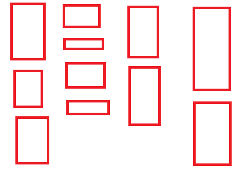 所以,我们就可以,每次都找到它的最短的那一列,然后添加到它的后面,不管是谁,只要在添加图片的时候,只要你短,我就在你后面添加的道理。就能有效的避免刚才那种情况的发生了,吼吼,看代码吧......