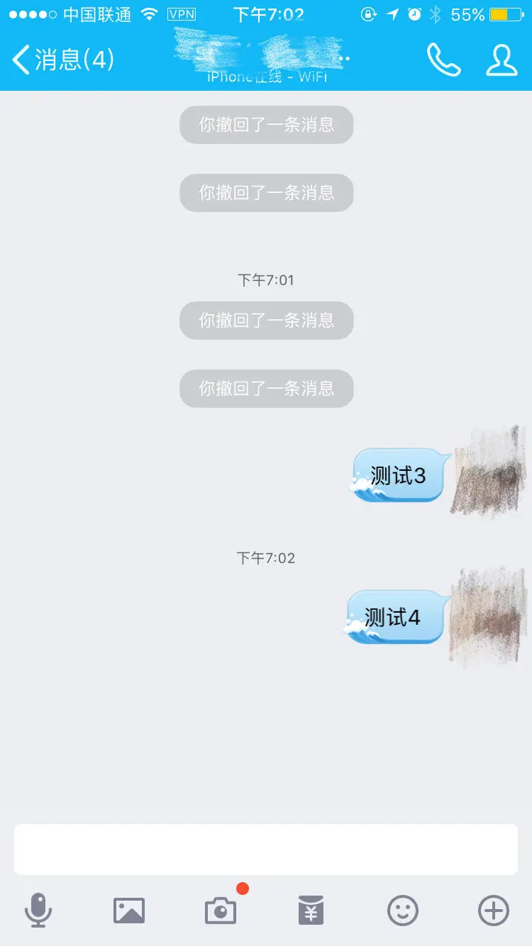 这是我在 iPad 运行的修改版本,可以看见之前被撤回的信息还在。