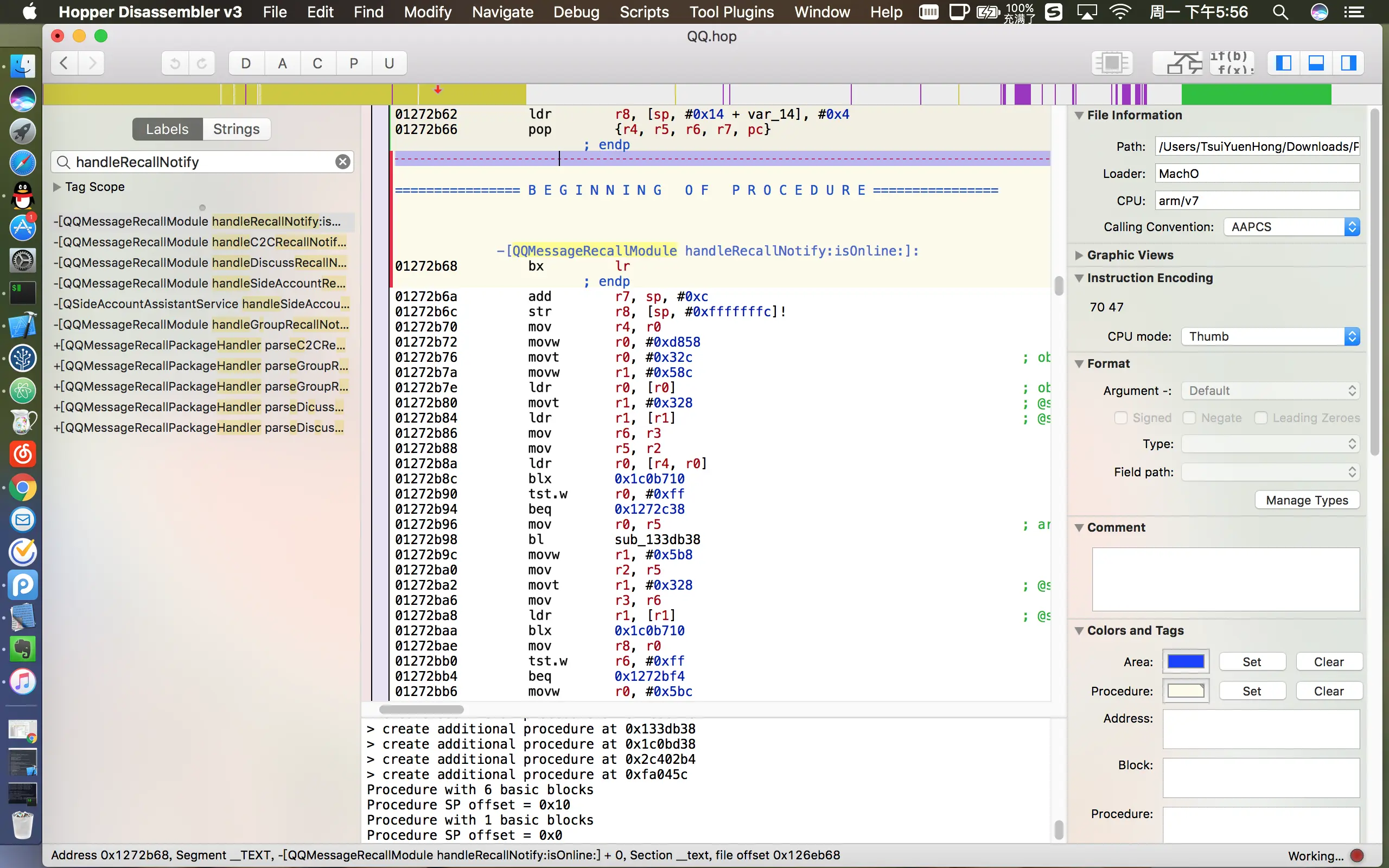 把 QQ可执行文件 丢进 hooper,搜索 handleRecallNotify。