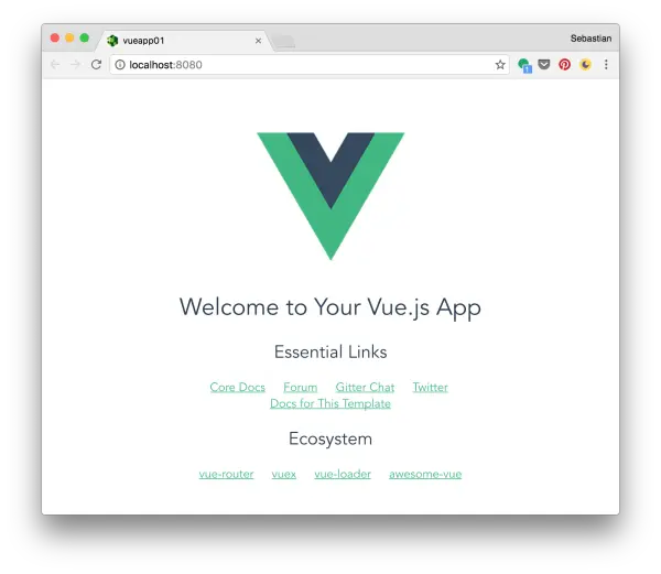 到这里项目的模板文件被添加到了vueapp01目录下,进入该目录即可以启动开发服务器: