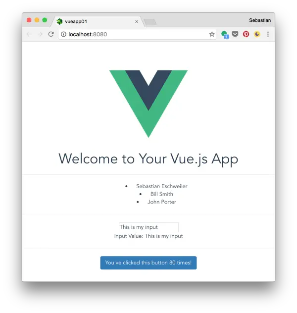 <button class="btn btn-primary" v-on:click="counter++">You've clicked this button {{counter}} times!</button>