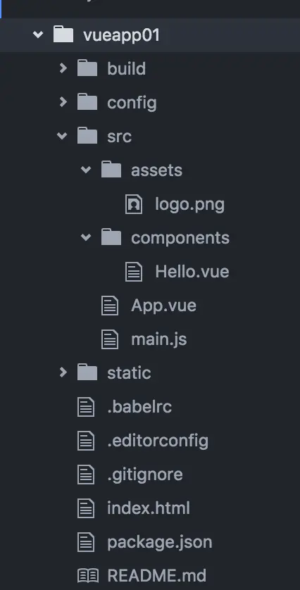 该部分的代码参考vue-boilerplate。首先我们来看下Vue-cli构建的项目目录结构: