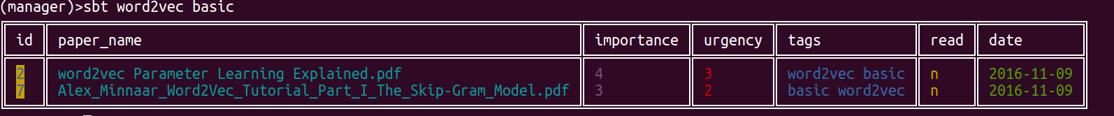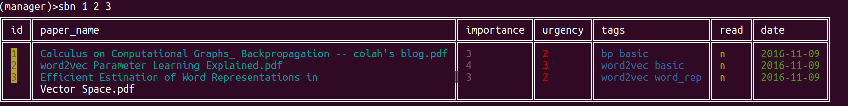 如果看完了某篇论文,想改read从n为y,也可以直接使用edit命令。不修改的字段直接回车,数据不会丢失。