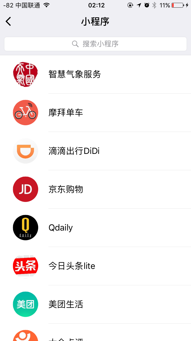 当粗略的打开了一系列的小程序之后,已经被打开过的小程序被记录在了一个从二级菜单进入的页面当中,并且会按照你的启动先后顺序(由最近至最远)排列。如果你再次打开列表最后的小程序,它又会被排到第一位