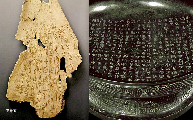 甲骨文和金文属于同时代的字体,但是甲骨文需要在卜卦之后迅速刻在龟甲上,有一种率性不拘的美。而金文要铸造在青铜器,置于庙堂之上,所以结构严谨规整,有一种庄严神圣的意味。工具载体不同,风味也不一样。