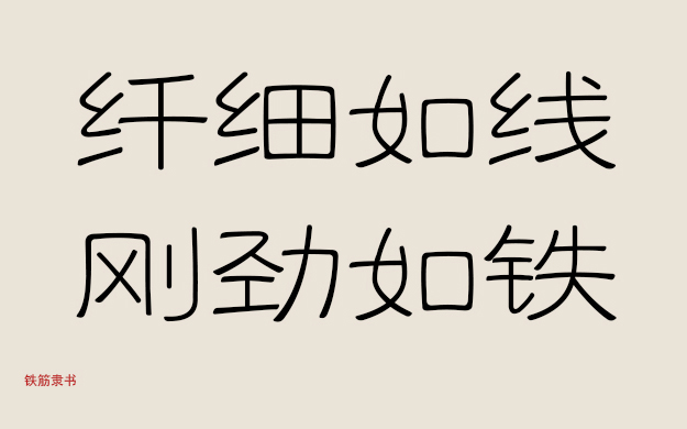 任何理论都会有特例的情况,比如说铁筋隶书虽然绝大多数笔画都是曲线,却处处透着力量感。虽纤细如线,却刚劲如铁。本质上就是因为它的弧度都是有弹性的,将弧度加入横画,非但不减刚劲,反而会有一种反弹的力道。
