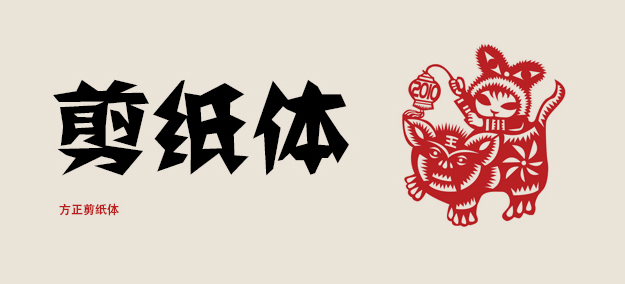 剪纸体将民间传统的剪纸艺术融入了字体中,角度错落,笔画之间做了粘连处理。不规则的线条显得俏皮、轻松,又掺杂了一些民族风格。