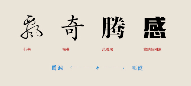 不同的书写工具会赋予字体不同的性格,毛笔赋予字体丰富的质感和多变的线条,或婉若游龙,或势若雷霆。
