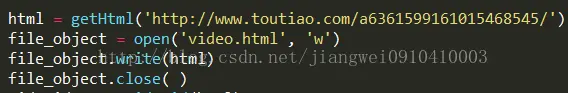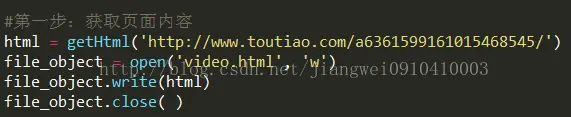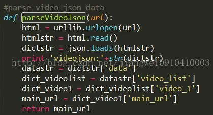 好了到这里我们发现这么几步就可以把视频弄到微信中了,但是这么看来是不是有点费劲,而且还需要手动,完全不符合一个程序猿的做事风格,所以咋们得写程序实现自动化。我们为了方便现在PC端上写脚本实现自动化下载这个视频,原理也很简单,用Python脚本进行网页爬虫,得到视频原链接即可,关于爬虫知识点不多介绍了,网上多的很,而用Python来爬非常方便的,不到100行代码即可。爬虫原理很简单:使用api获取整个页面内容,然后用正则表达式得到你想要的标签内容或者纯文本内容即可。下面就来看一下Python脚本中获取页面内容的代码: