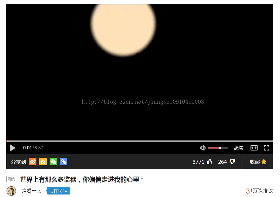 看到上面的步骤并不复杂,但是在操作过程中还是有些地方需要注意的,主要是上面的那个随机数和crc32加密逻辑,为了掩饰简单,这里依然选择python脚本进行实践,其实用哪种语言没有任何关系的,原理都是一样的。从上面的步骤分析结果可以知道,如果我们想要得到最终的视频url,有一个信息必须得到就是视频的id值,这个我们需要回头看开始得到的那个页面内容,在那里应该会有这个视频id值: