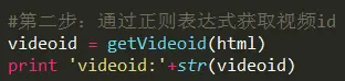 在第一步的基础上解析页面内容,用正则表达式获取视频id值: