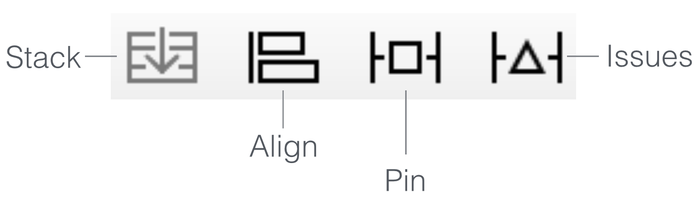 在文章中会使用两种方法来进行约束。首先使用auto layout bar,在Interface Builder编辑器的右下角应该会看到四个按钮,这些按钮都属于布局栏,可以使用它们来定义不同类型的布局约束。