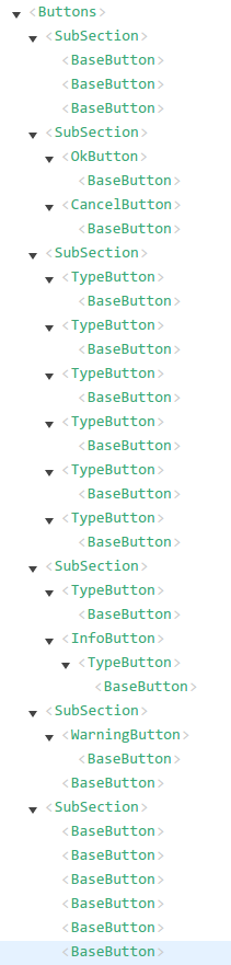 第五个SubSection中基于base-button增加一层,在组件树中使用函数化组件的danger-button也没有产生一层,因此只有1层base-button