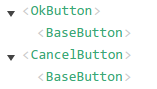 派生的ok-button和cancel-button使用时不需要再设置样式相关的属性,只需要设置标签间的default slot并绑定事件,但是这种方案有很大的问题,每一个定制的*-button都需要一个单独的文件,文件之间的重复代码相当多,另外没有提取css的情况下,每一个*-button组件的样式都会在文档中生成一个style标签。