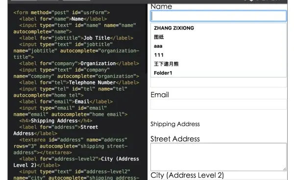 早年各个浏览器之间对于自动填充并没有统一的标准,后来HTML5标准中加入了对于autocomplete属性的支持,以协调浏览器对于表单域的识别。最初autocomplete属性仅支持on与off两种取值,默认情况下是会启动自动填充功能以方便浏览器会将用户提交过的表单值记录下来以便复用。后续HTML标准中允许加入更多的标识值,这些标识值会更加精确地告诉浏览器应将哪些记录值对应到哪些表单。譬如我们经常需要在网页上填写地址信息,如果我们希望浏览器能够记录下常用地址信息并且自动补全,那么可以使用如下声明方式:
