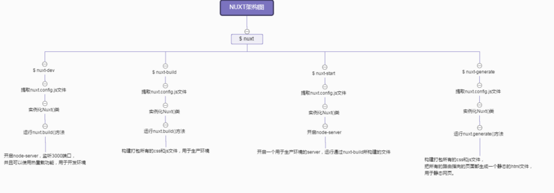 本文主要研究nuxt的运行原理,分析它从接收一条nuxt指令,到完成指令背后所发生的一系列事情。