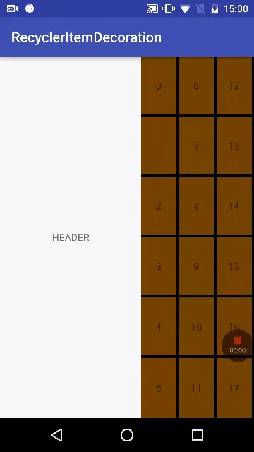 先看一下实现样式,为了方便控制,边界的均不设置分割线,方便定制,如果需要可以采用Padding或者Margin来实现。 Github连接RecyclerItemDecoration