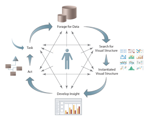 嵌套模型的上半部分基本上就是我们之前说的分析、处理两步,下半部分是对可视化结果的各类验证。本质上就是一个验证加迭代的过程。我们知道很多事都不是一蹴而就的,需要不断迭代,所以有人提出了循环模型。